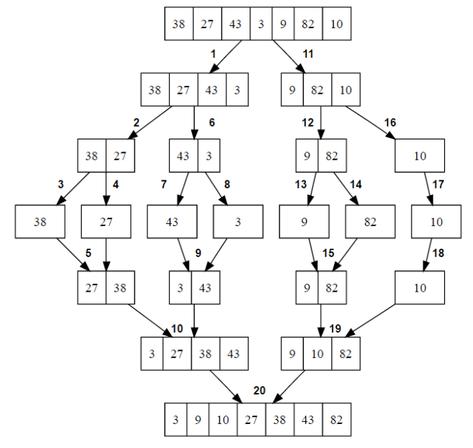 . The length of the list is determined. Because this is a divide and conquer algorithm we need to have two different functions. For that we find mid point of an array.